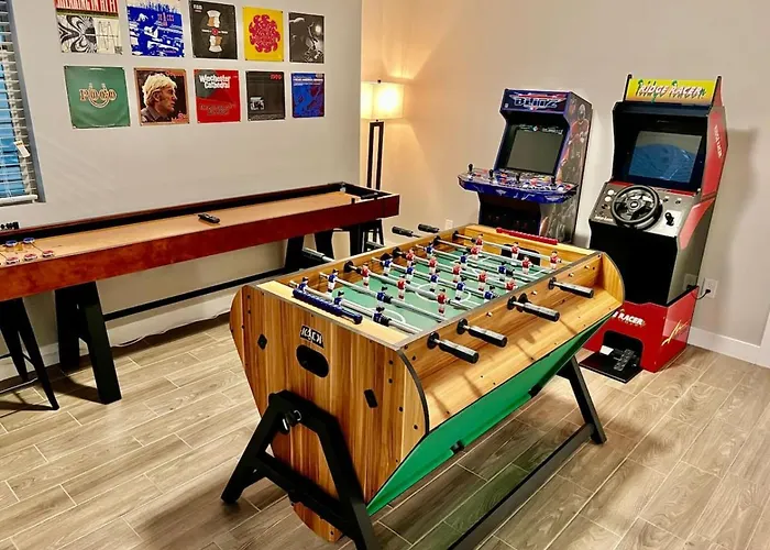 Een ingerichte kitchenette met een waterkoker, een koelkast en een oven is ook aanwezig. Gasten kunnen Griekse gerechten proberen in George's Famous Gyros, op wandelafstand van 15 minuten van 3Bedroom 3Bath House With Roof Top Lounge & Game Room In Tempe villa. 3Bedroom 3Bath House With Roof Top Lounge & Game Room In Tempe villa is goed verbonden met veel bezienswaardigheden en ligt in de buurt van McKellips Rd & Scottsdale Rd bushalte.